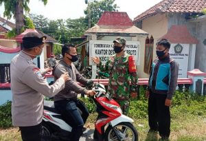 “ Kami sengaja mengajak masyarakat untuk menerapkan protokol kesehatan terutama pakai masker, jaga jarak antara satu sama lain, dan juga sering cuci tangan dari manapun beraktifitas.” Imbuh babinsa Talakbroto.