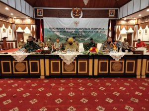 Jambiekspose.com , jambi – Komandan Korem 042/Gapu Brigjen TNI M. Zulkifli, S.I.P, M.M, Pj Gubernur Jambi Dr. Hari Nur Cahya Murni, M. Si, Kapolda Jambi Irjen Pol A Rachmad Wibowo dan Kajati Jambi Dr. Johanis Tanak, SH, MH beserta pejabat terkait mengikuti Vidcon Rakornas Pengendalian Kebakaran Hutan dan Lahan tahun 2021, di auditorium Rumdis Gubernur Jambi, Senin (22/2/2021).