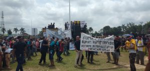 Jambiekspose.com | Jambi – Massa sopir angkutan batubara yang tergabung dalam Asosiasi Sopir Angkutan Batubara (Asaba) menggelar aksi demo di lapangan kantor Gubernur Jambi, Senin (13/12/12).