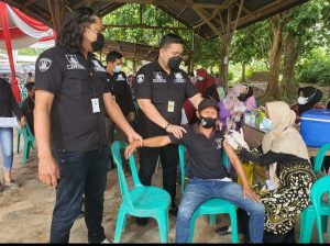 Reskrim Peduli Vaksin yang di gelar hari ini mentarget sasaran sebanyak 300 orang dan sekaligus di adakan Baksos pemberian sembako sebanyak 300 paket kepada masyarakat Kumpeh ulu .
