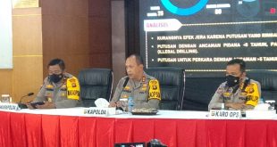 Jambiekspose.com, JAMBI – Kepolisian Daerah Jambi menggelar Konferensi Pers akhir Tahun 2021 yang dipimpin langsung oleh Kapolda Jambi Irjen Pol A Rachmad Wibowo, SIk serta didampingi oleh Wakapolda Jambi Brigjen Pol Yudawan R, SH, MH dan Karo Ops Polda Jambi Kombes Pol Feri Handoko SIk. Bertempat di Gedung Balai Bhayangkara …