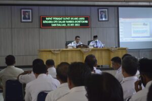 Lanjut lagi Bupati mengatakan Percepatan pembangunan yang sudah baik maka terus ditingkatkan.Saya minta kepada kepala OPD agar secepatnya merealisasikan anggaran sekarang sudah memasuki bulan Mei sudah mau berakhir,
