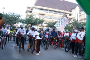 Jambiekspose.com ( Jambi) – Sekretaris Daerah (Sekda) provinsi Jambi Sudirman melepas peserta fun bike semarak hari Bhayangkara ke-76 Polda Jambi yang diikuti ribuan pencinta sepeda di provinsi Jambi, Minggu (19/6/2022) pagi.