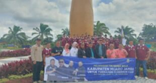 Jambiekspose.com (Muaro Jambi)- PJ Bupati Muaro Jambi Bachyuni Deliansyah Bersama Ketua ASKAB PSSI Muaro Jambi Alfian Fahmi, melepas keberangkatan tim sepakbola kabupaten Muaro Jambi untuk mengikuti ajang gubernur cup di kabupaten Tebo, Minggu (08/01/2023). Pelepasan Tim Sepakbola kabupaten Muaro Jambi ini dilaksanakan di Tugu Tangan Pijoan, selepas acara tersebut tim …