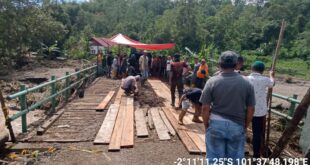 Jambiekspose.com | KERINCI – Pihak Balai Pelaksanaan Jalan Nasional (BPJN) Jambi gerak cepat dalam menangani kerusakan jembatan Tamiai berupa tergerusnya oprit pada abutmen arah Kerinci mengakibatkan abutmen roboh akibat banjir bandang yang terjadi pada Senin malam (01/1/24). Disampaikan langsung oleh Kepala BPJN Jambi Ibnu Kurniawan saat dikonfirmasi, Selasa malam (2/1/24). …