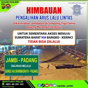 “Himbauan tidak hanya dilakukan di medsos, tetapi juga dilakukan oleh petugas kita di Merangin, Bungo, Sarolangun dan Batanghari agar informasinya sampai kepada masyarakat mengenai jalur yang belum bisa dilewati,” tambahnya.