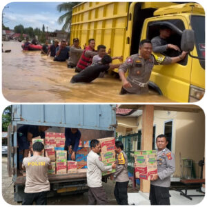 Tidak hanya itu saja, kepedulian Polres Sarolangun turut memberikan bantuan sembako di posko pengungsian, hingga membagikan makanan kepada masyarakat yang terdampak banjir dan warga yang masih bertahan di rumahnya.