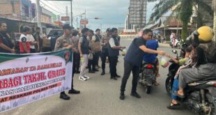 Jambiekspose.com | TEBO — Kepolisian Resort (Polres) Tebo melalui Satuan Reserse Kriminal (Satreskrim) turun langsung ke jalan dengan membagikan ratusan takjil ke pengendara dan Masyarakat Jelang Buka Puasa, Selasa (26/3/24). Pembagian ratusan takjil tersebut dipimpin langsung Kasat Reskrim Polres Tebo Iptu Yoga didampingi Kanit Idik 1 Sat Reskrim …
