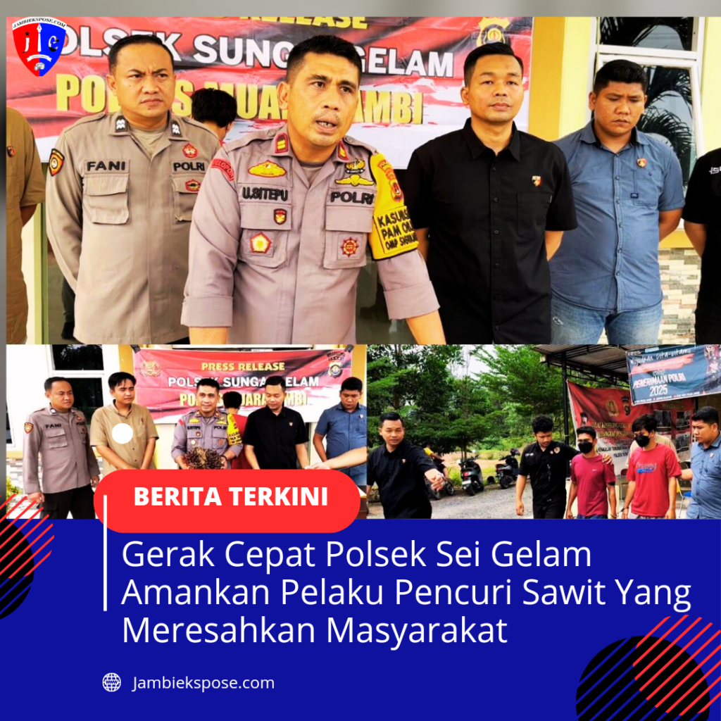 JAMBIEKSPOSE.COM | MUARO JAMBI — Polsek Sungai Gelam berhasil mengamankan 2 orang pelaku pencurian buah sawit siap panen pada Rabu 30 Oktober 2024.