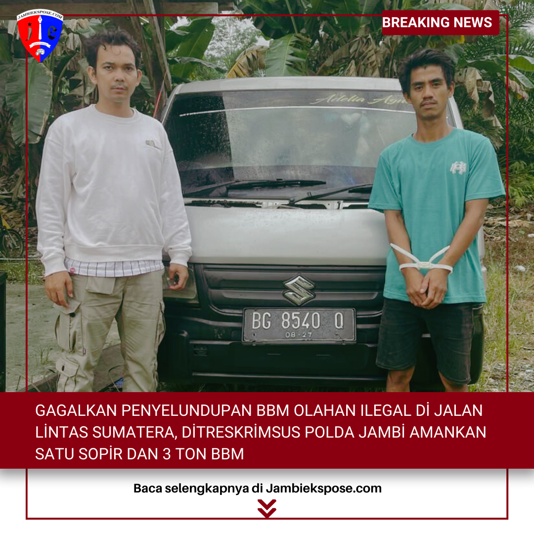 Dirreskrimsus Polda Jambi Kombes Pol DR Bambang Yugo Pamungkas melalui Kasubdit IV Tipidter Ditreskrimsus Polda Jambi AKBP Reza Khomeini mengatakan Penyelundupan BBM tersebut berhasil digagalkan berkat informasi yang diterima oleh petugas, yang kemudian melakukan penyelidikan intensif. Setelah kendaraan yang mencurigakan ditemukan, petugas segera memberhentikan dan berhasil mengamankan satu orang tersangka yang membawa BBM olahan ilegal tersebut.