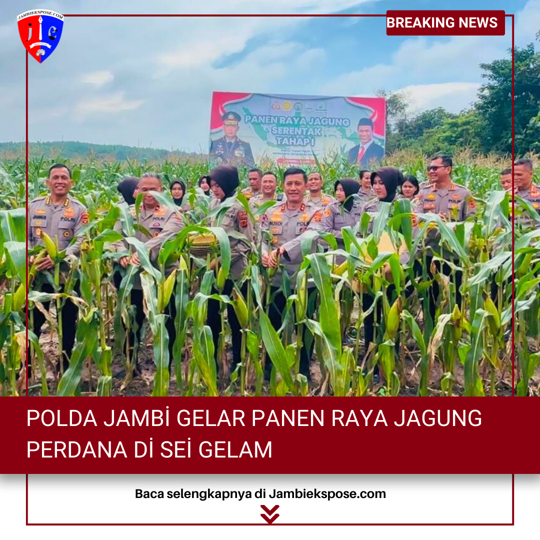 JAMBIEKSPOSE.COM | MUARO JAMBI — Kepolisian Daerah Jambi menggelar panen raya jagung perdana di lahan pertanian seluas 1 hektare yang berada di wilayah hukum Polres Muaro Jambi Polda Jambi tepatnya di Desa Sei Gelam Kabupaten Muaro Jambi Rabu (26/2/2025).