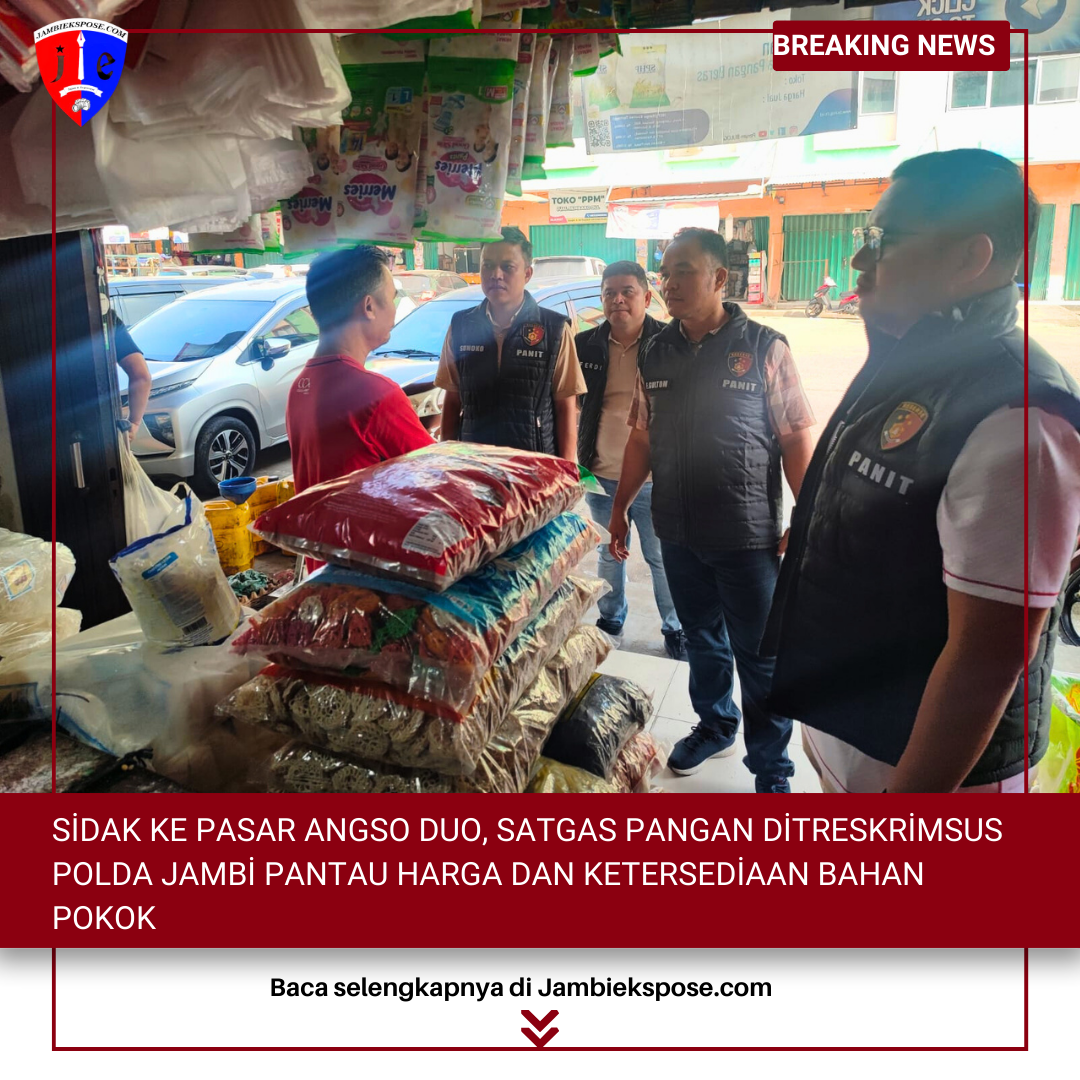JAMBIEKSPOSE.COM | JAMBI — Memasuki hari kedua Bulan Ramadhan, Tim Satgas Pangan Ditreskrimsus Polda Jambi melakukan sidak serta pemantauan harga dan ketersediaan bahan pokok (BAPOK) di Pasar Tradisional Angso Duo Jambi, Minggu (2/3/2025).