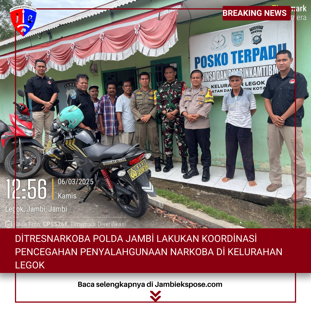 JAMBIEKSPOSE.COM | JAMBI — Dalam upaya pencegahan penyalahgunaan narkoba di Kelurahan Legok, Ditresnarkoba Polda Jambi melakukan koordinasi dengan instansi terkait di Pos Terpadu Kelurahan Legok.