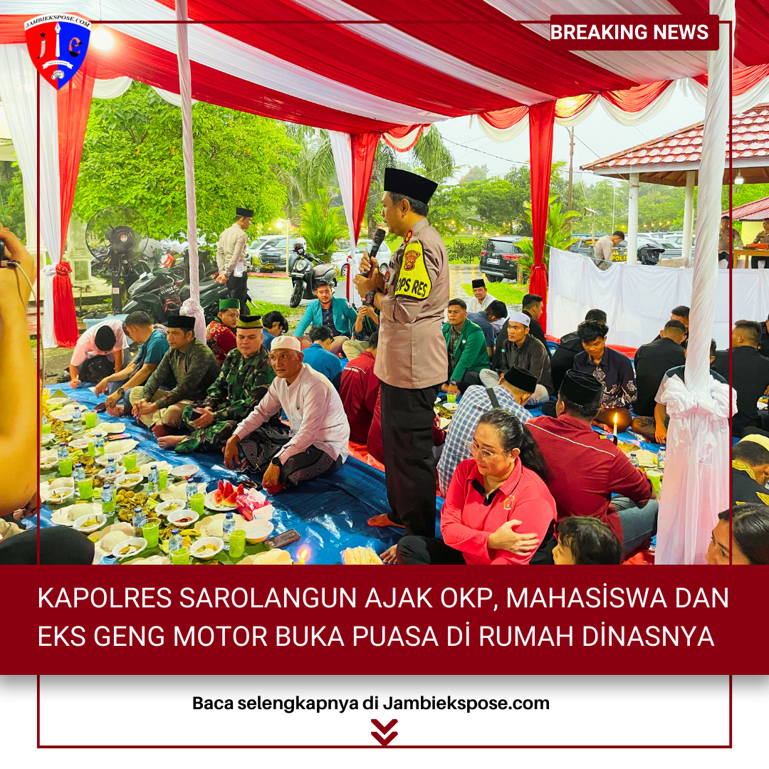Sabtu (08/3/2025) sekira Pukul 17.00 Wib, Rumah dinas yang ditempati Kapolres Sarolangun terpantau berdiri tenda dan dipenuhi anak anak muda dari mahasiswa dan anak anak motor kabupaten Sarolangun yang melaksanakan Buka Bersama.
