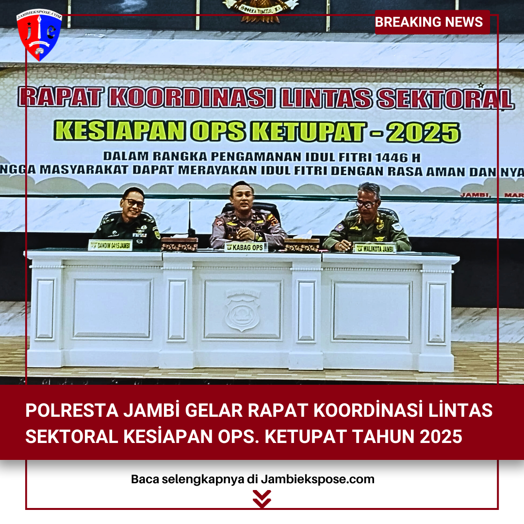 JAMBIEKSPOSE.COM | JAMBI — Polresta Jambi menggelar kegiatan Rapat Koordinasi Lintas Sektoral Kesiapan Ops. Ketupat Tahun 2025 di ruang Lokamanginti Lt. 2 Polresta Jambi pada Senin, 17 Maret 2025.