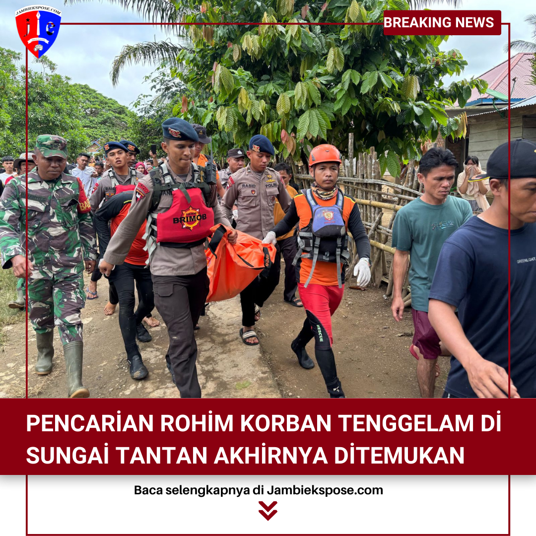” Pencarian Tim SAR Gabungan telah membuahkan Hasil, Korban ditemukan sejauh Kurang lebih 6 KM ke arah Hilir Sungai dalam keadaan Meninggal Dunia. ” Ucap Kasubbid Penmas Bidhumas Polda Jambi Kompol Amin Nasution pada Senin, (05/05/2025)